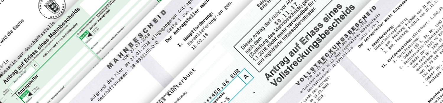 Falls der Schuldner auch nach unseren Inkassoschreiben nicht zahlt, beantragen wir den Erlass eines gerichtlichen Mahnbescheids gegen den Schuldner. Hierfür fallen u.a. Gerichtskosten an - aber auch diese Kosten bezahlen wir: Wir übernehmen auch alle Gerichtskosten, ohne Wenn und Aber.